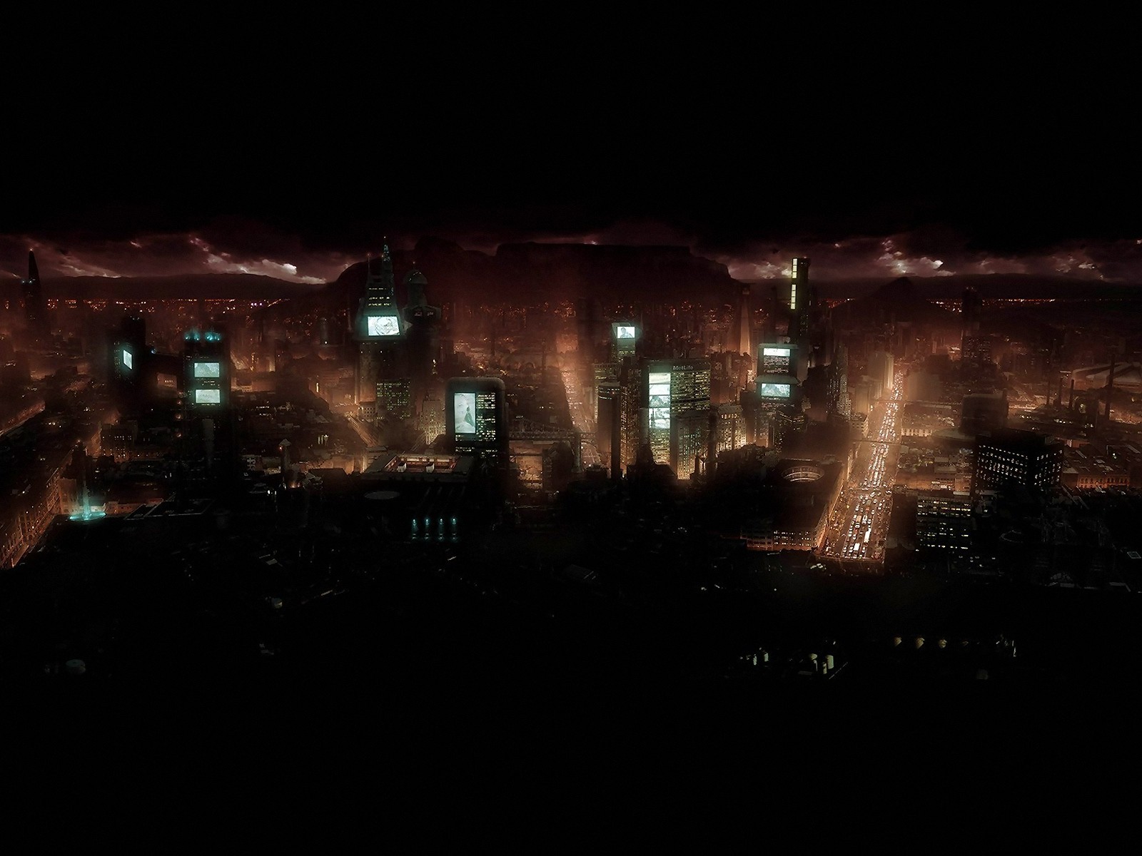 On a black background, a night city with a thousand lightsOn a black background, a night city with a thousand lights