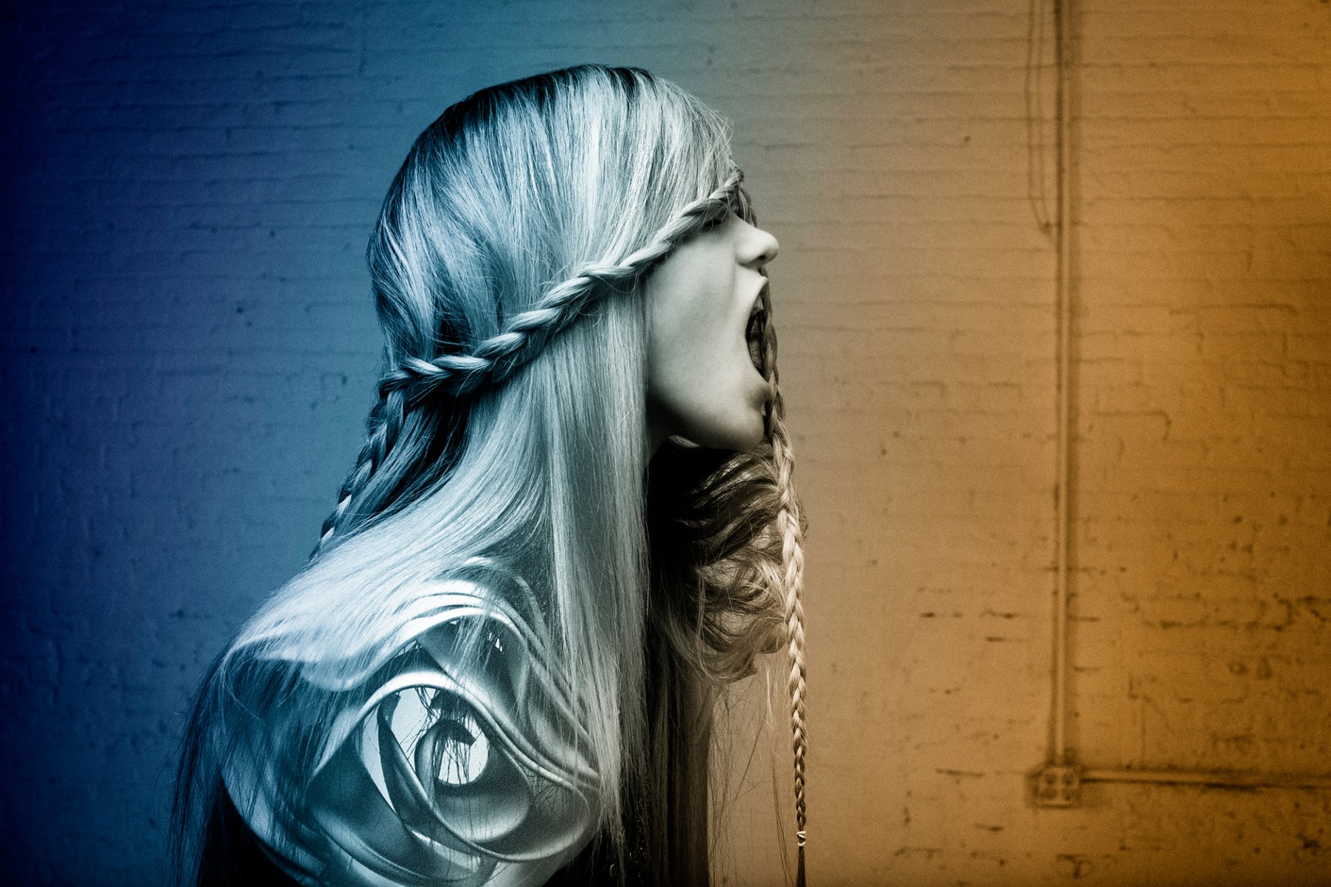 Portraits of the beatles and a hanging chair in the bedroom interiorPortraits of the Beatles and a hanging chair in the bedroom interior