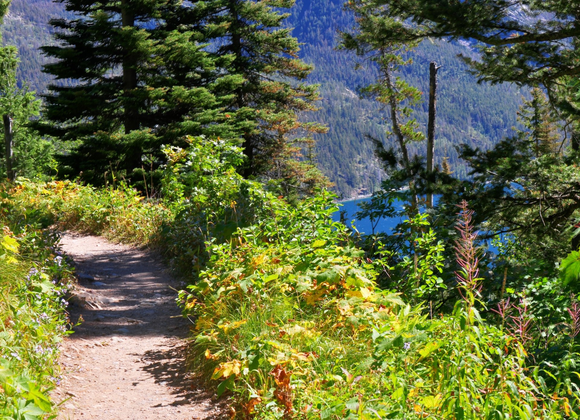 Mountain trail with lake view