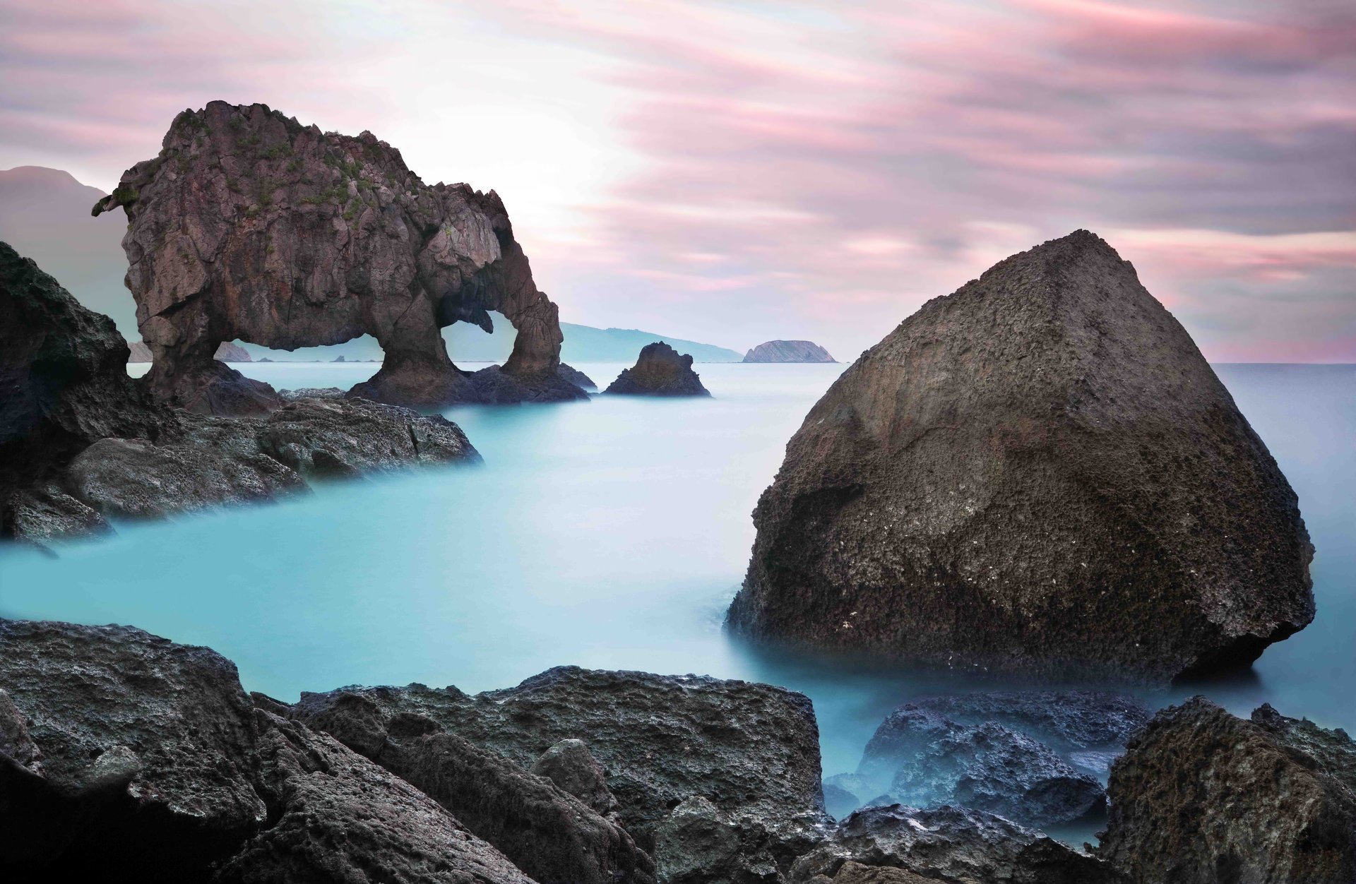 Turquoise-colored sea around an elephant-shaped rockTurquoise-colored sea around an elephant-shaped rock