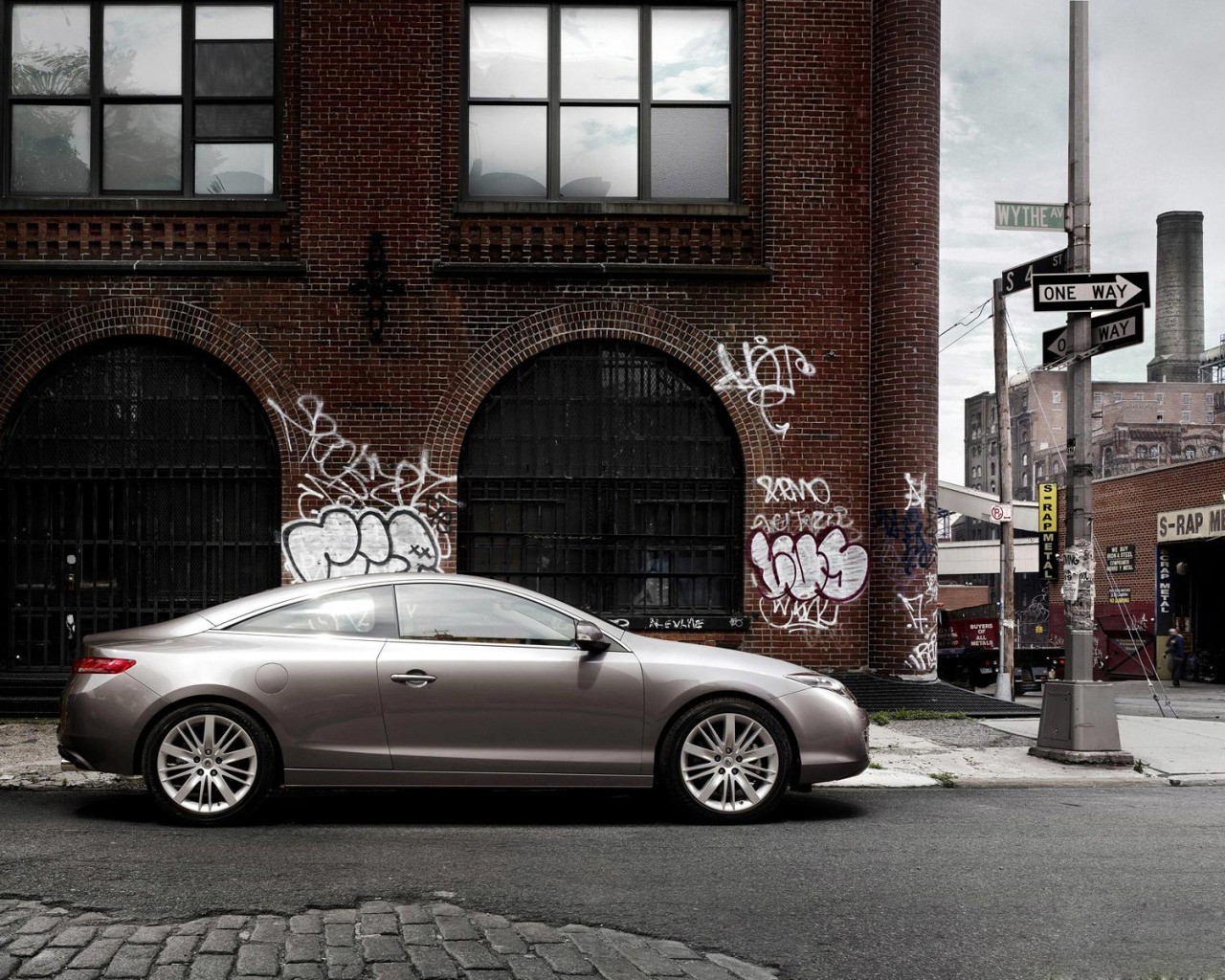 Dark car on the background of urban graffiti