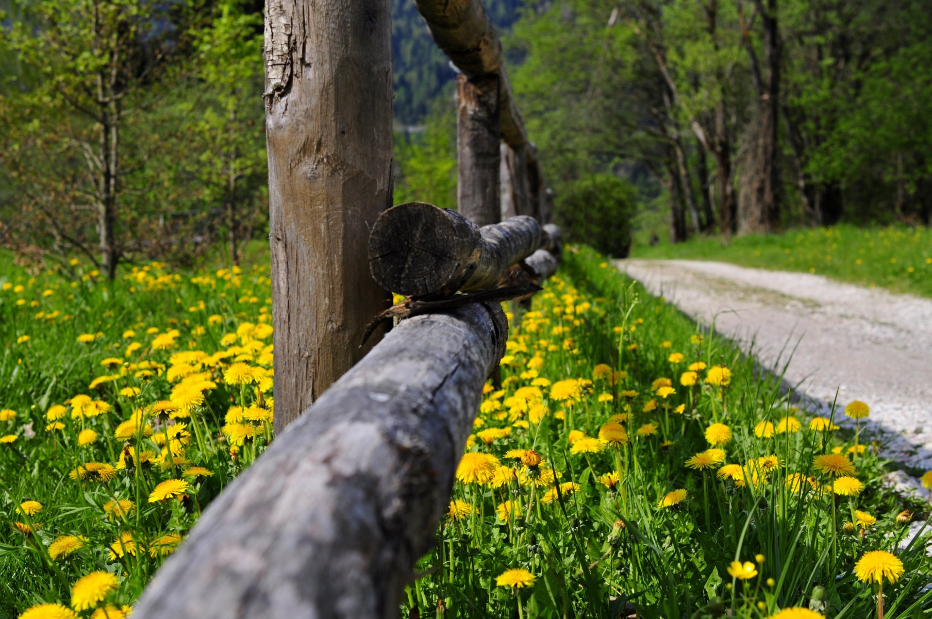 A rural road along an old wooden fence, the outlines of houses and trees drowning in fogA rural road along an old wooden fence, the outlines of houses and trees drowning in fog