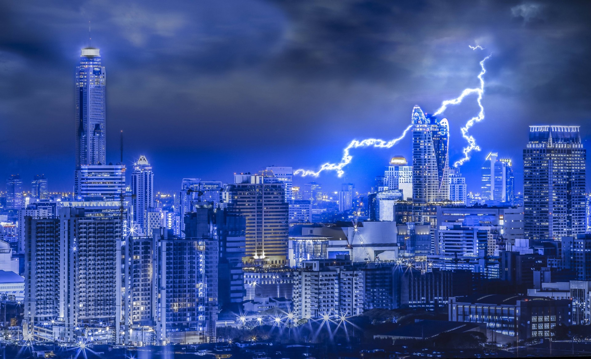 Bangkok at night in inclement weather