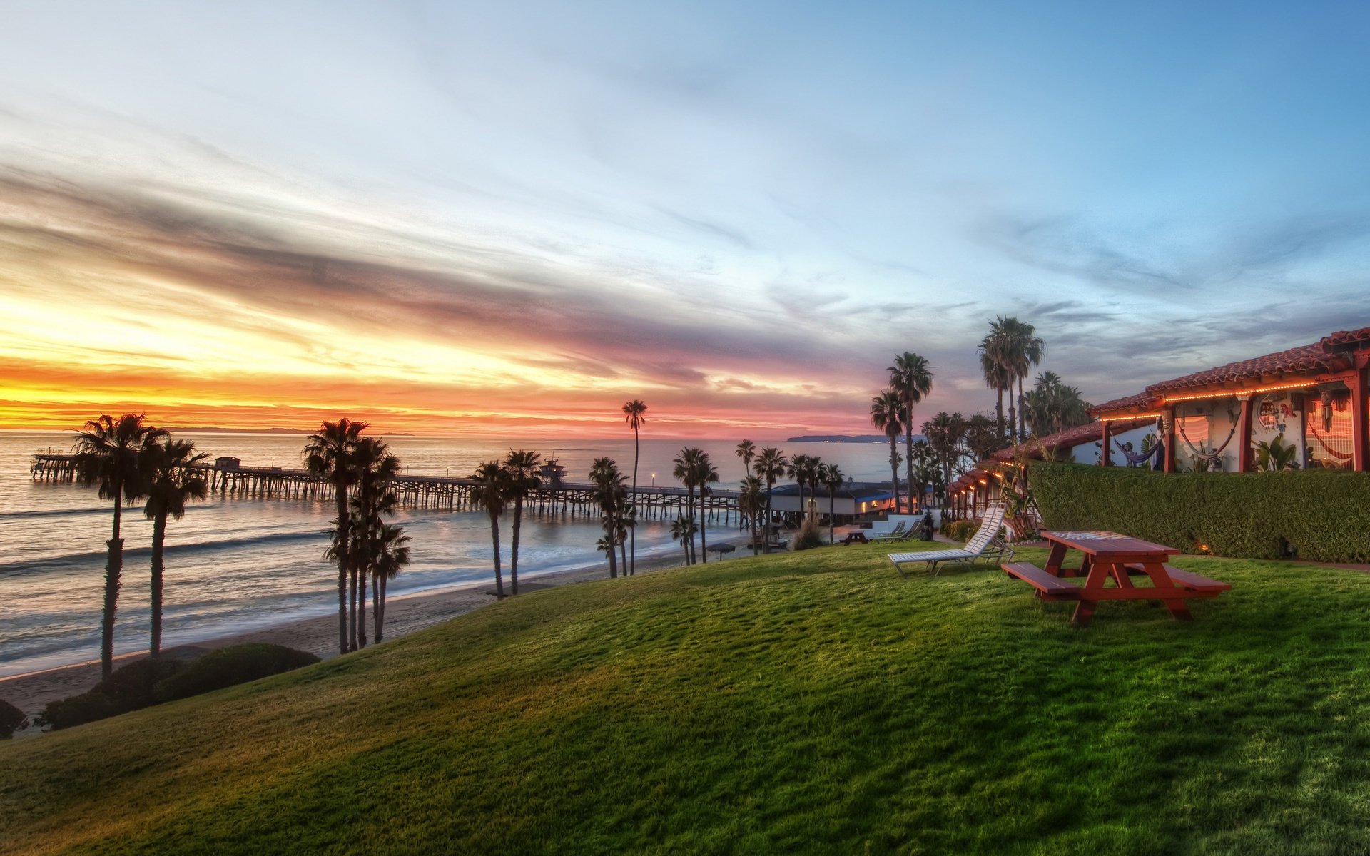 A house on the seashore against the background of a bright evening landscapeA house on the seashore against the background of a bright evening landscape