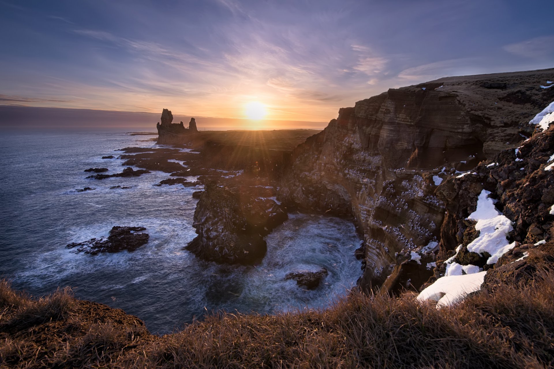 Rocky seashore in winter