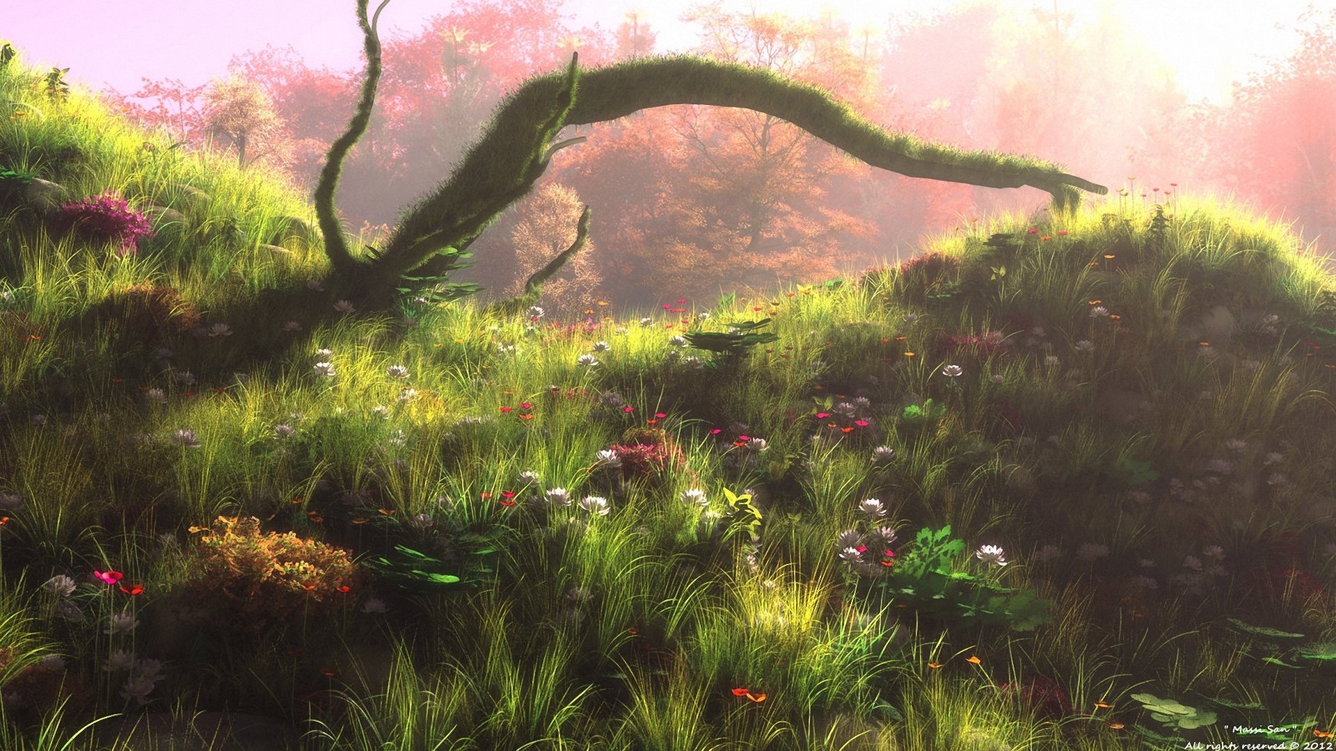 The landscape of the morning forest with its wonderful flowersThe landscape of the morning forest with its wonderful flowers