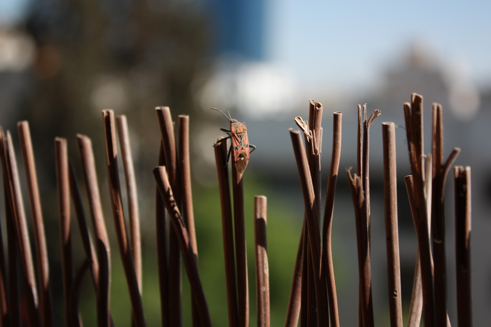 The insect disguised itself on twigs with a blurry backgroundThe insect disguised itself on twigs with a blurry background