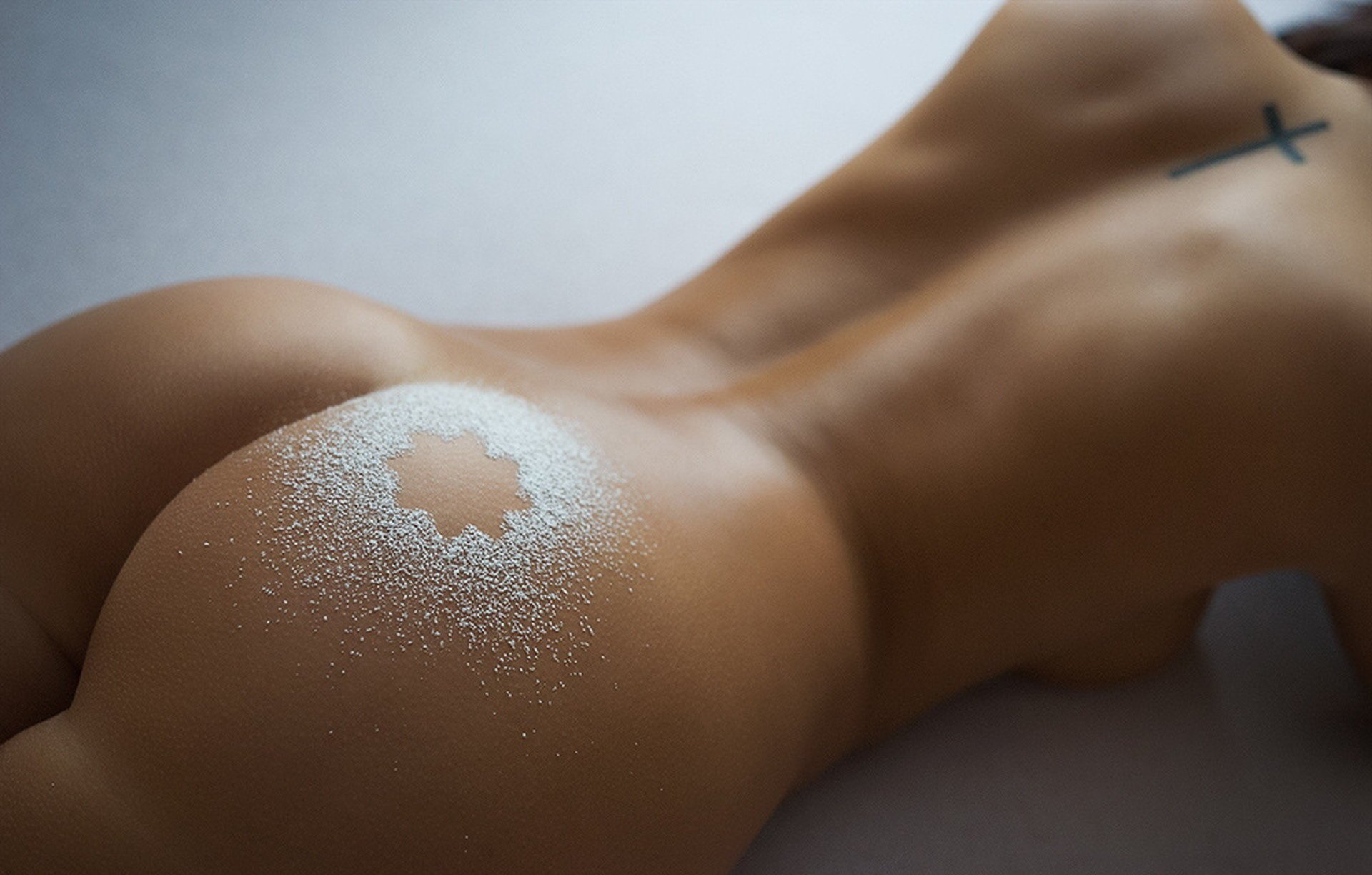 A girl in a beautiful pose in the kitchen near the microwave oven