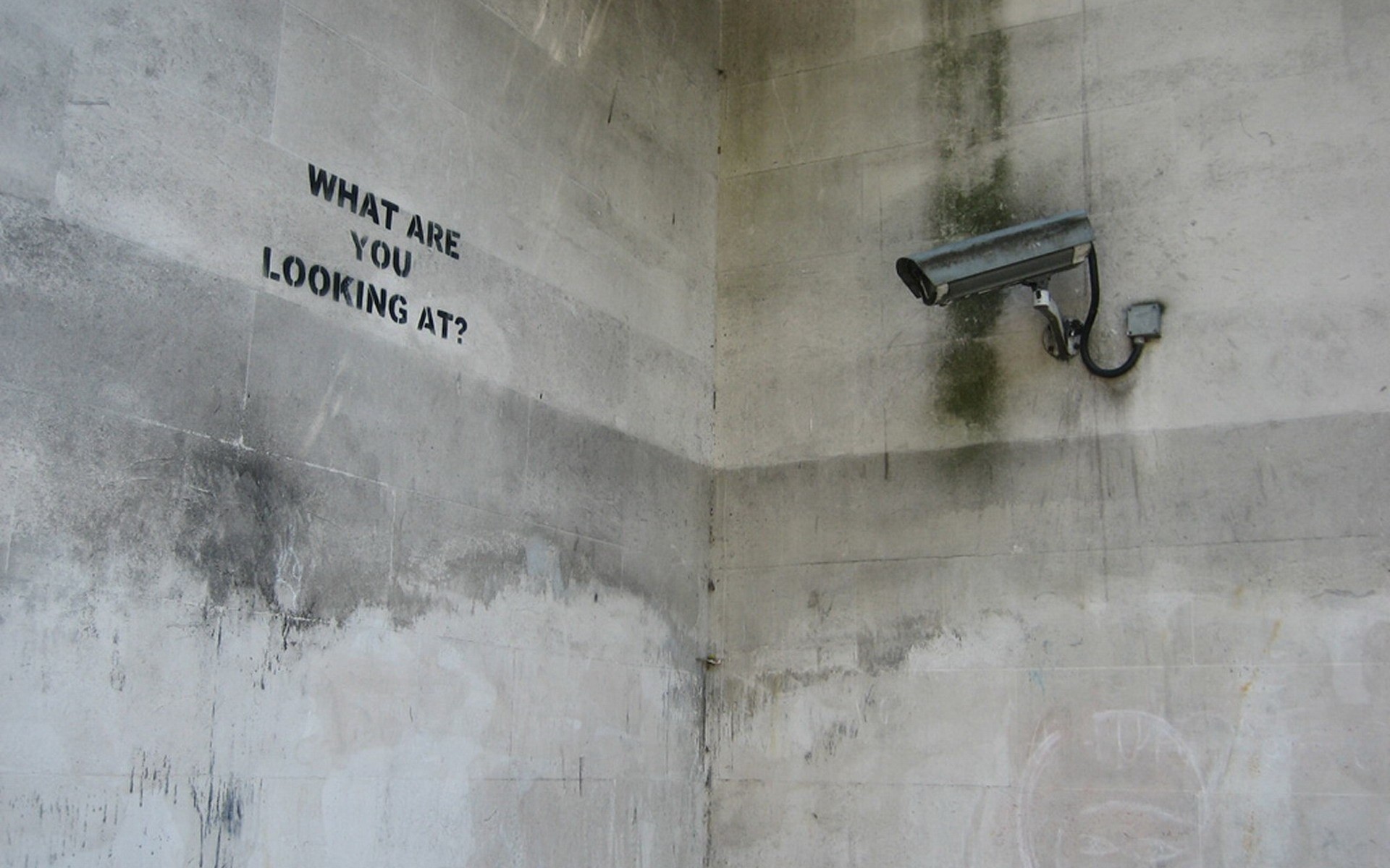 A gray wall with a camera and an inscription - desktop wallpapers